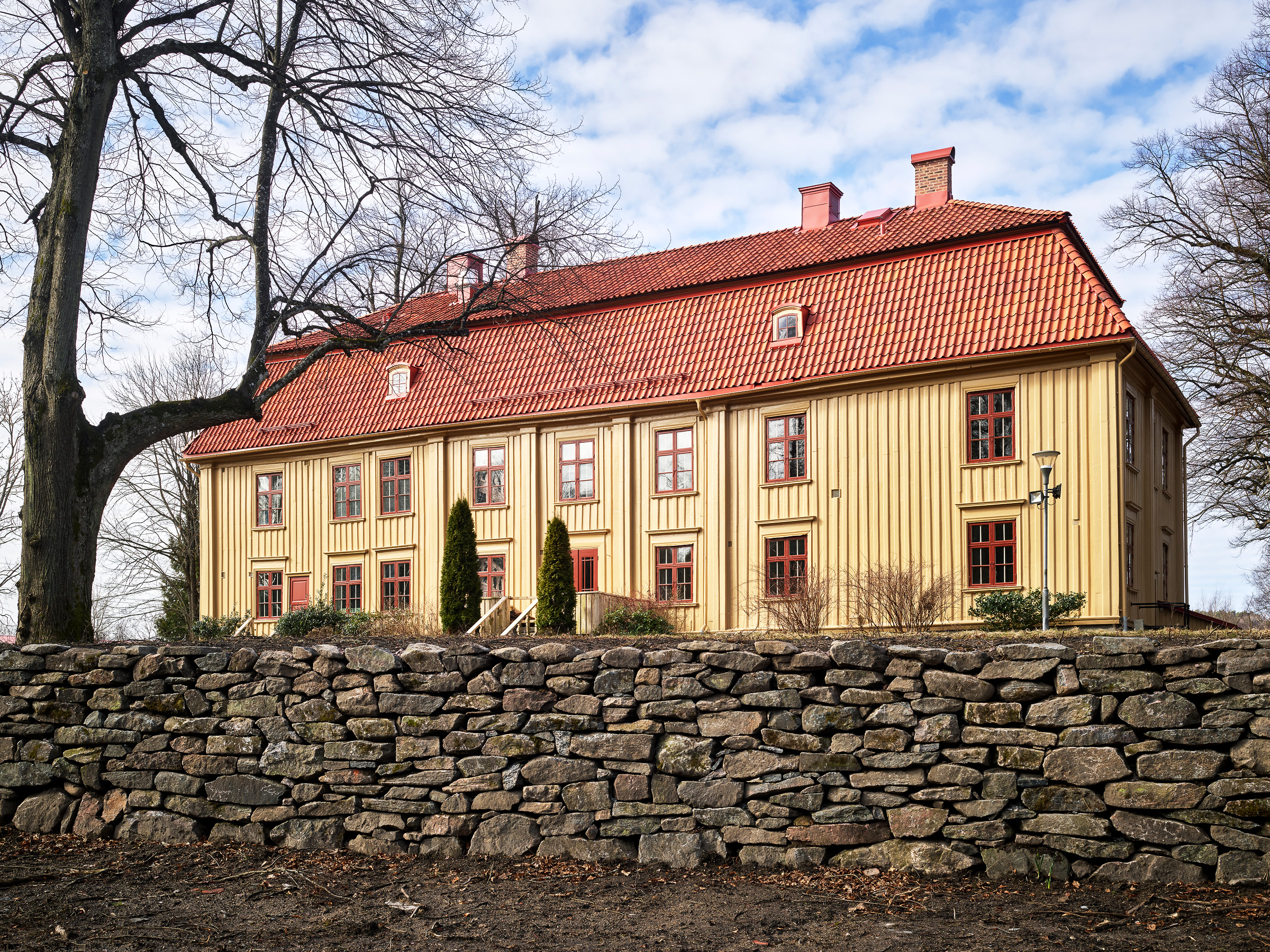 Huset består av två våningar med många rum och vrår, en stor salong och ett nyrenoverat kök. På baksidan sträcker sig Lärjeån och en stor böljande trädgård som tidigare var anlagd i engelsk stil. Här har stenmuren från 1700-talet byggts upp igen och de stora lindarna har beskurits för att lyfta fram den gamla allén.