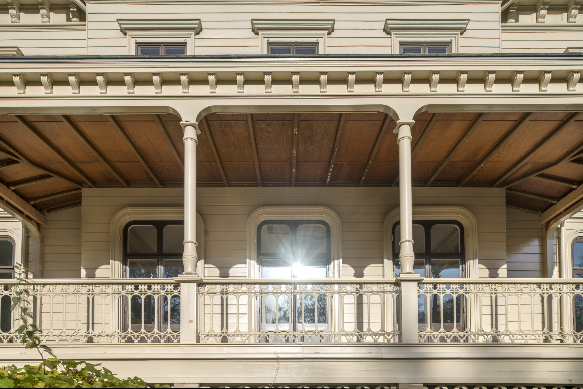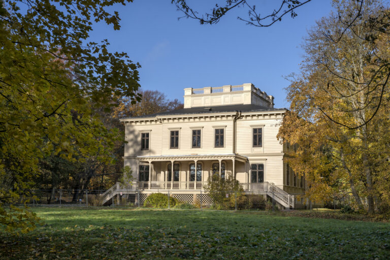 När James R Dicksons sommarbostad byggdes på 1860-talet var arkitekturen starkt inspirerad av nyrenässansen där idealen var ordning och symmetri. Interiören och exteriören är helt formade efter dessa normer, inte minst i de genomgående klassiska dekorelementen. Det enda som bryter mot symmetrin är den diagonalställda entrén och trappan, vilket är kopplat till dåtidens engelska riktlinjer för planering av bostäder som förespråkade avskildhet och bekvämlighet. I huset finns en genomtänkt arkitektonisk gestaltning där varje rum har getts en särskild karaktär med hjälp av olika träslag, dekorativt måleri, kulörer och ornamentariskt snickeri och stuckatur. Den översta tredje våningen består av en påbyggnad i mitten som skjuter upp över byggnadskroppen och förstärker den monumentala karaktären.