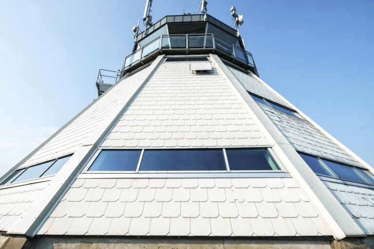 Torslanda flygfält anlades 1923 och invigdes av kronprins Gustav Adolf. Det var Göteborgs flygplats fram till 1977 då det ersattes av Landvetter flygplats. Under det expansiva 1960-talet byggdes ett nytt flygledartorn då det gamla inte längre räckte till. Det nya tornet på Snäckeberget i Amhult fick en rymdinspirerad exteriör med konisk form och glaskupol. Det sträcker sig 42 meter över marken. Tornet stod färdigt 1969 och fick en dramatisk start när den stora stormen inträffade i september samma år. Fönstren klarade inte en vindstyrka på 35 m/s utan sprack strax efter att personalen lämnat tornet.