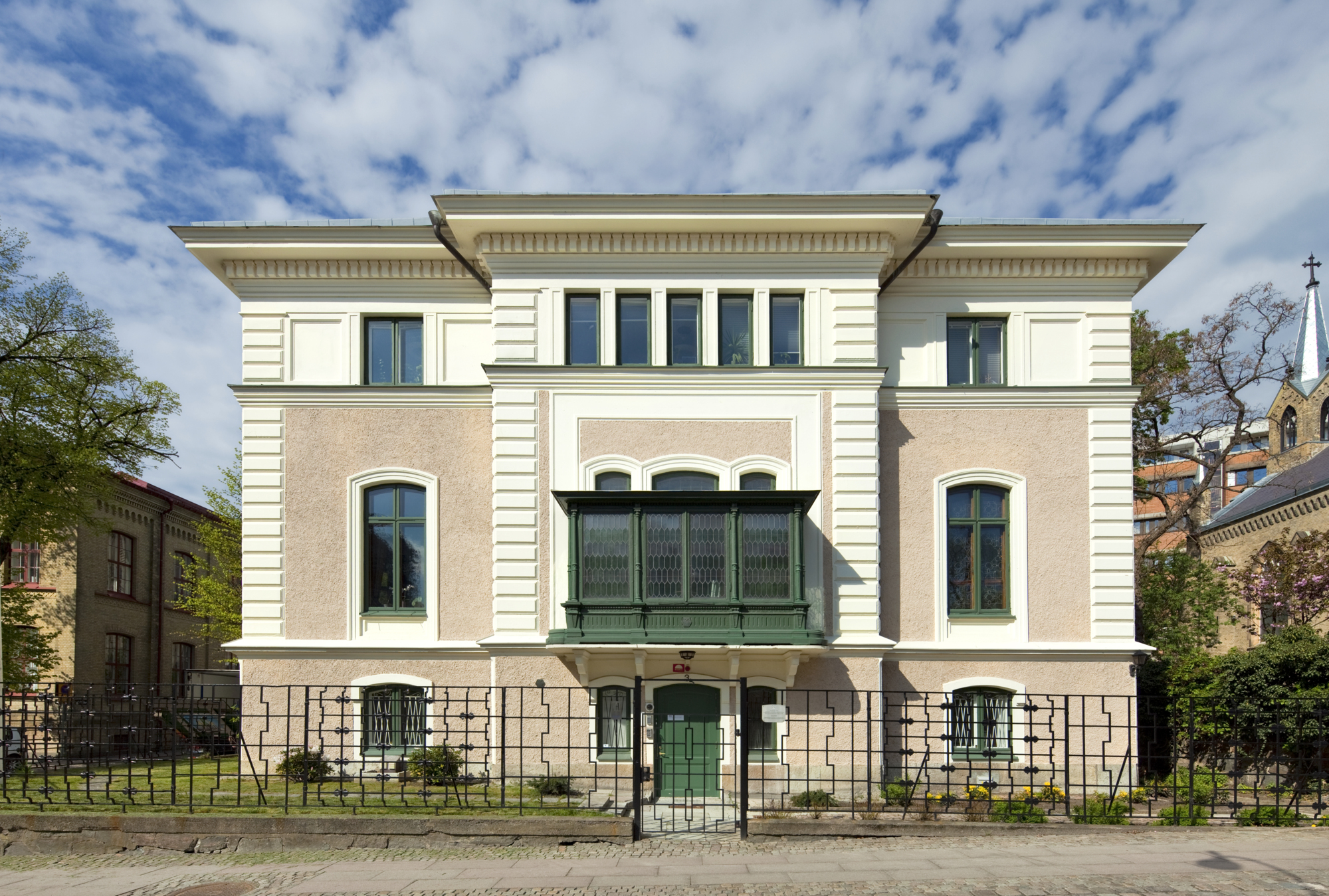 Huset ritades av Victor von Gegerfelt som är mest känd som arkitekten bakom Feskekôrka. Här bodde han med sin familj i knappt tio år och källaren var inredd som laboratorium åt sonen Harald. Numera finns Göteborgs universitet i den gamla privatbostaden.