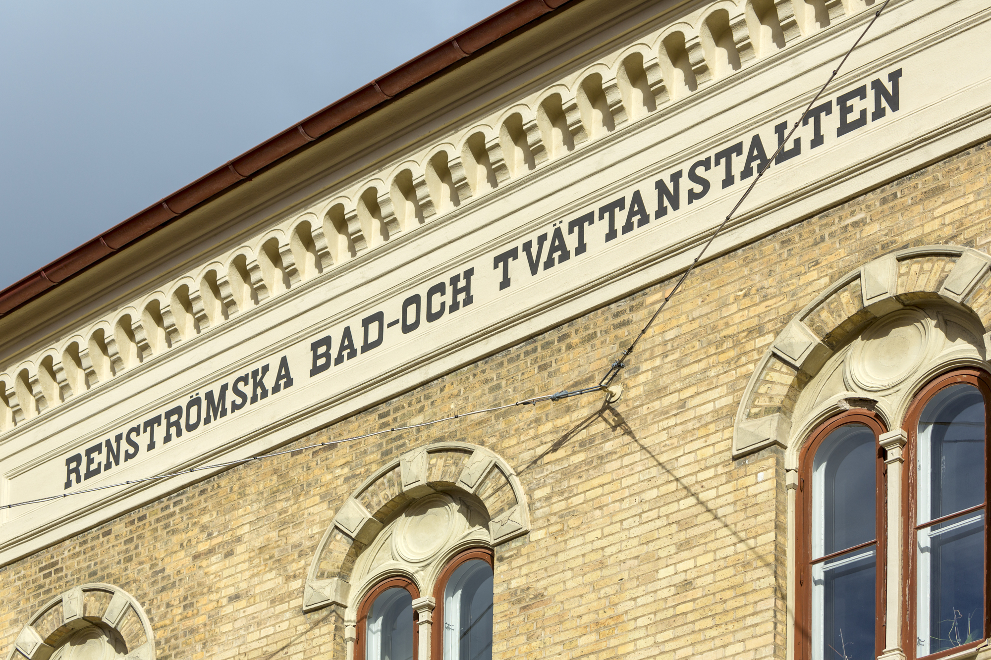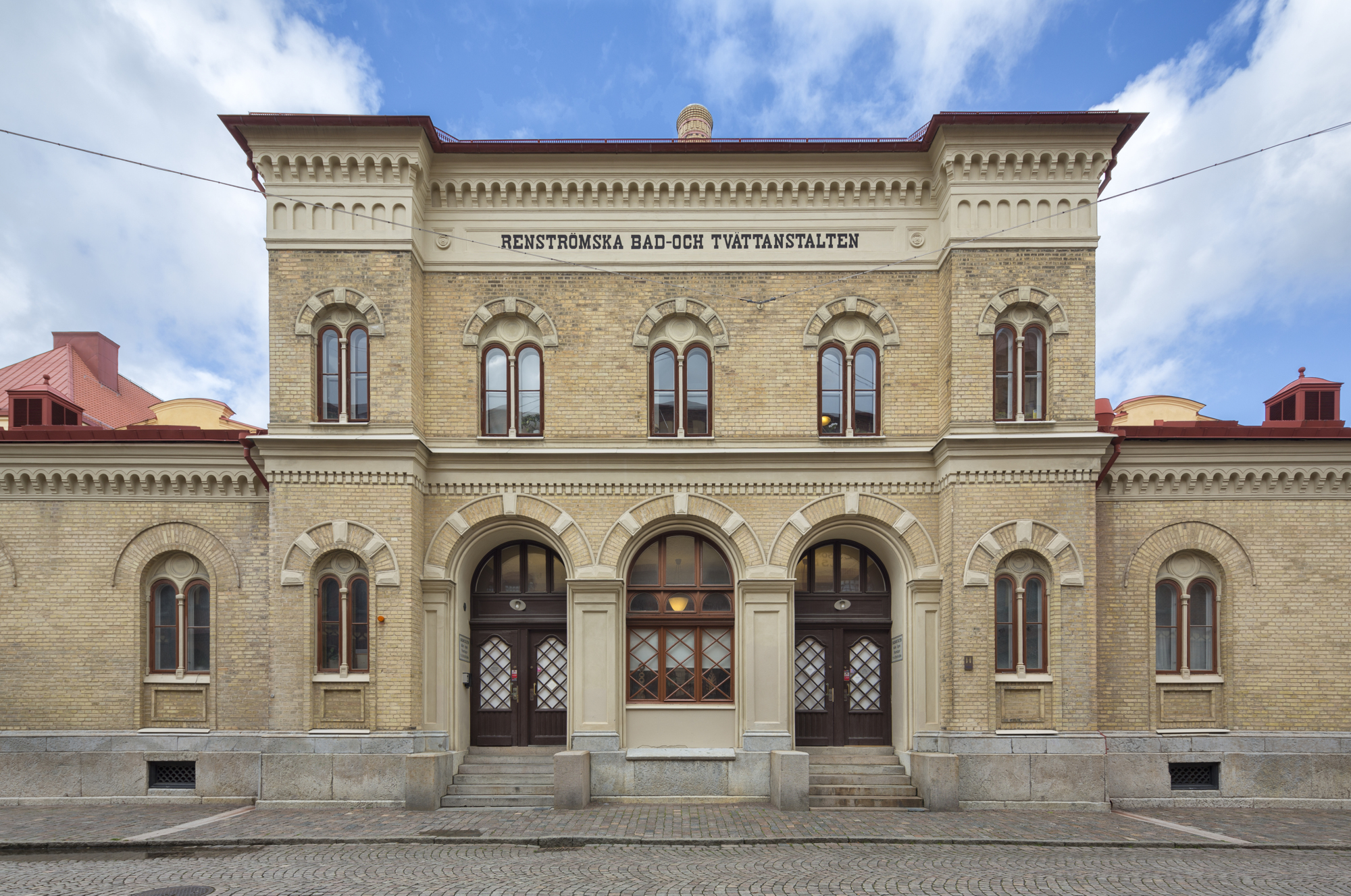 När Hagabadet öppnade i december 1876 hette det Renströmska Bad- och tvättinrättningen. Byggnadens utsida med gula tegelfasader, rundbågade fönster och entrédörrar liksom stora delar av interiören är bevarad än idag.