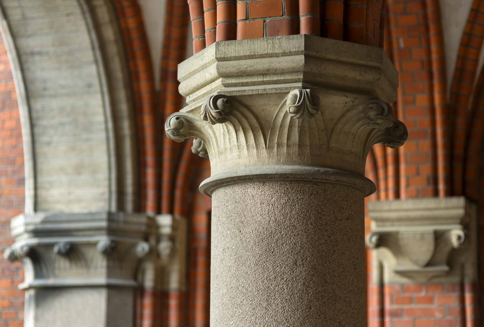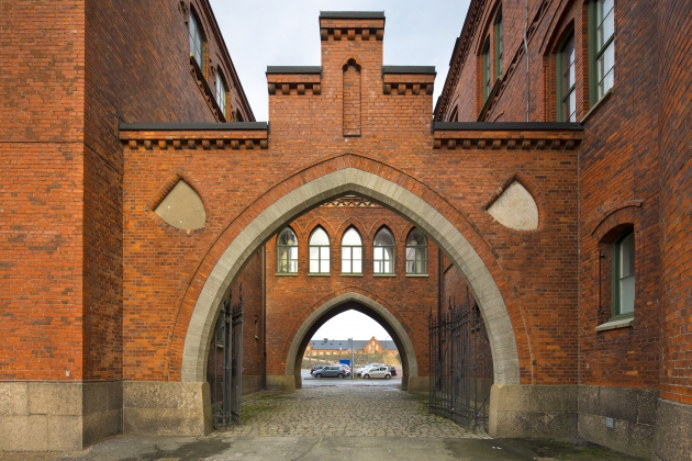 Byggnaderna utformades i tidstypisk stil som var inspirerad av gotiken och medeltida borgararkitektur. Samtliga byggnader har fasader av rött tegel och svart plåt på taken.