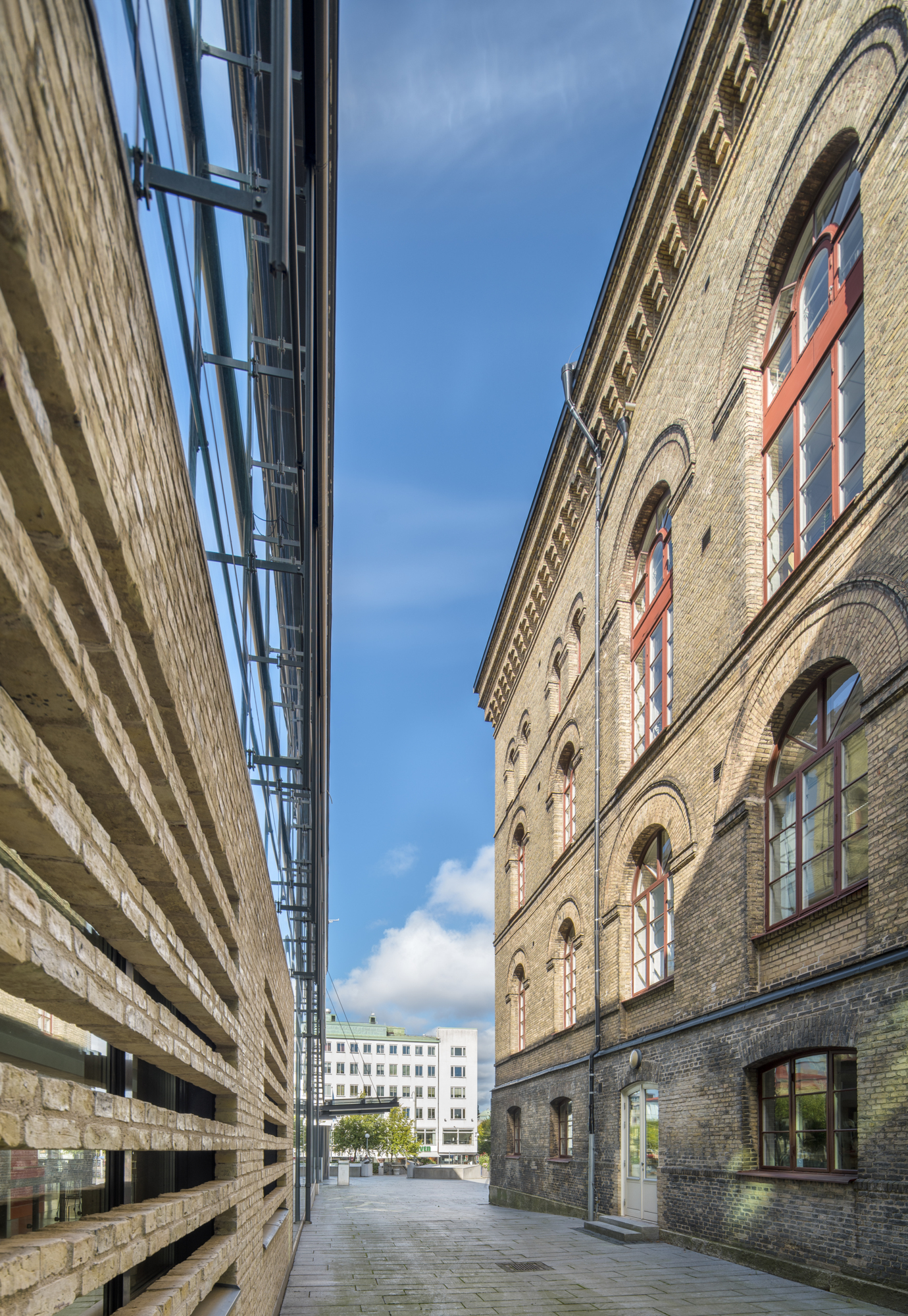 De gamla byggnaderna, som båda uppförts på 1850-talet, hade byggts om ett antal gånger under årens lopp. Strävan under projektet var att de skulle återfå sina gamla strukturer och samtidigt bilda en funktionell helhet tillsammans med nybyggnaden som uppfördes mellan dem. Sociala Husets innergård har till exempel kompletterats med en tillbyggnad i glas som bland annat rymmer bibliotek, café och administration. Den gamla parkeringsplatsen vid Gamla Latin ersattes av ett parkeringsgarage i två plan under nybyggnaden.