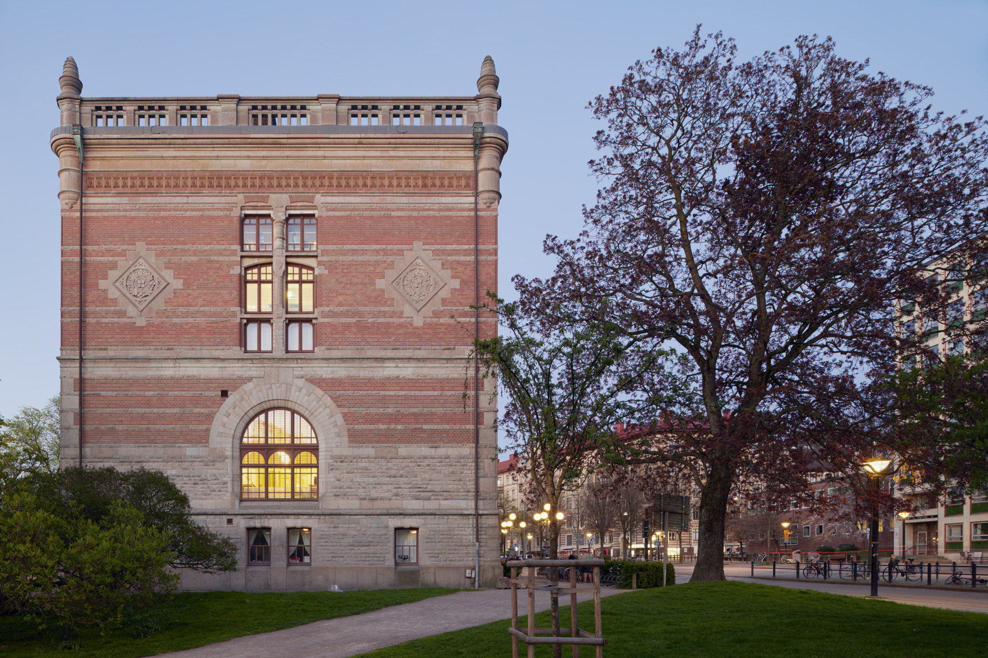 Huset rymde en gång i tiden Göteborgs Stadsbibliotek. Det ska dock inte förväxlas med dagens stadsbibliotek vid Götaplatsen som har sitt ursprung i Dicksonska Folkbiblioteket i Haga. I dag finns Göteborgs universitets samhällsvetenskapliga bibliotek här.
