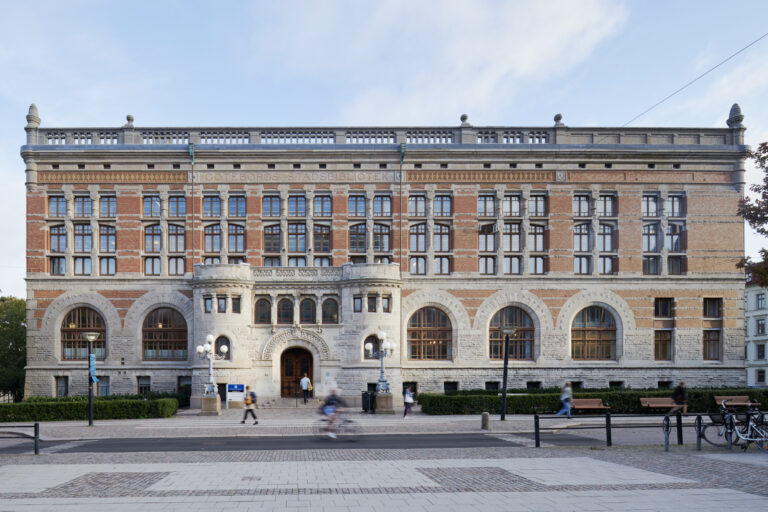 1994–1995 rustades den nästan 100 år gamla byggnaden upp. Nu användes den åter som bibliotek då den blev kurs- och tidningsbibliotek för Göteborgs universitet – i första hand för studenter inom det samhällsvetenskapliga ämnesområdet. Den stora läsesalen återfick huvudsakligen sitt tidigare utseende och målningen flyttades tillbaka till sin ursprungliga plats. Interiörerna återställdes med ljuskronor, möbler och färgsättning. Även entréhallen och exteriören med takbalustraden restaurerades.