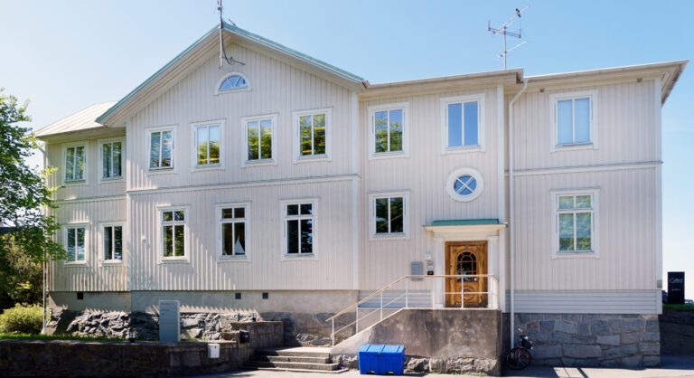 Fastigheten i Långedrag består av tre hus som byggdes på 1800-talet. Den tidigare bostaden Marieborg, ett före detta hotell och den så kallade Hasselbladska villan.